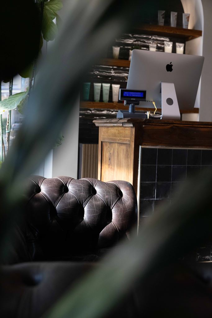 Le poltrone originali sono state rivestite e mantenute, così come le postazioni al lavatesta.