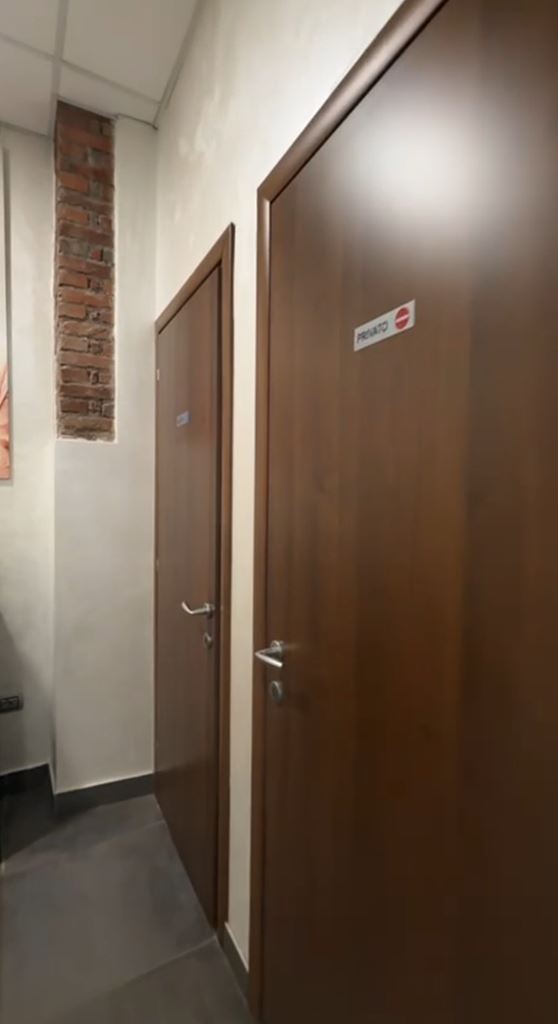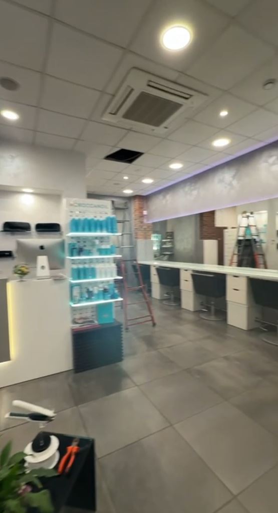 Il salone si trova al piano terra, in fondo a una strada senza uscita con altri negozi. Gli interni, nei toni del grigio, risultavano anonimi e poco funzionali.