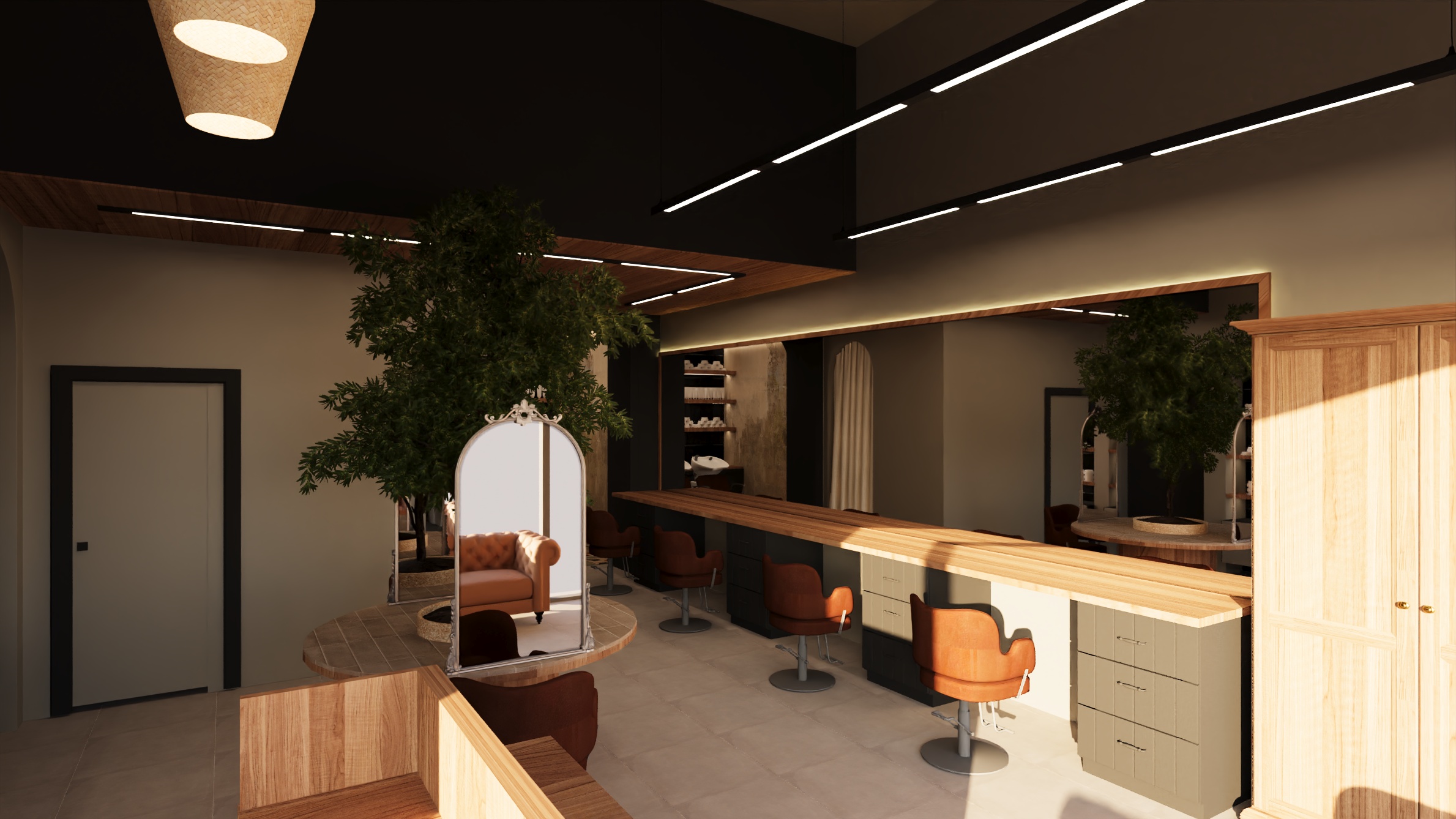 Creare un ambiente funzionale e accogliente, con una chiara separazione tra zona lavoro e area clienti.