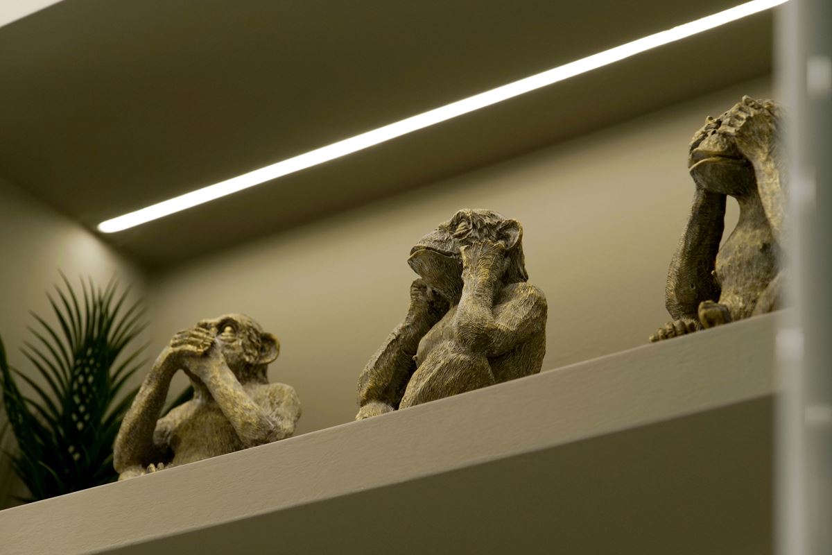 Si parte con un ampio ingresso che io amo chiamare lo spazio per gli abbracci, dove non possono mancare una mensola per le chiavi e un armadio a muro per cappotti e scarpe a destra due porte conducono al bagno e lavanderia a sinistra un piccolo tramezzo nasconde la visuale della cucina, che possiamo scorgere solo attraverso le doghe di un separè in legno illuminato a led.
