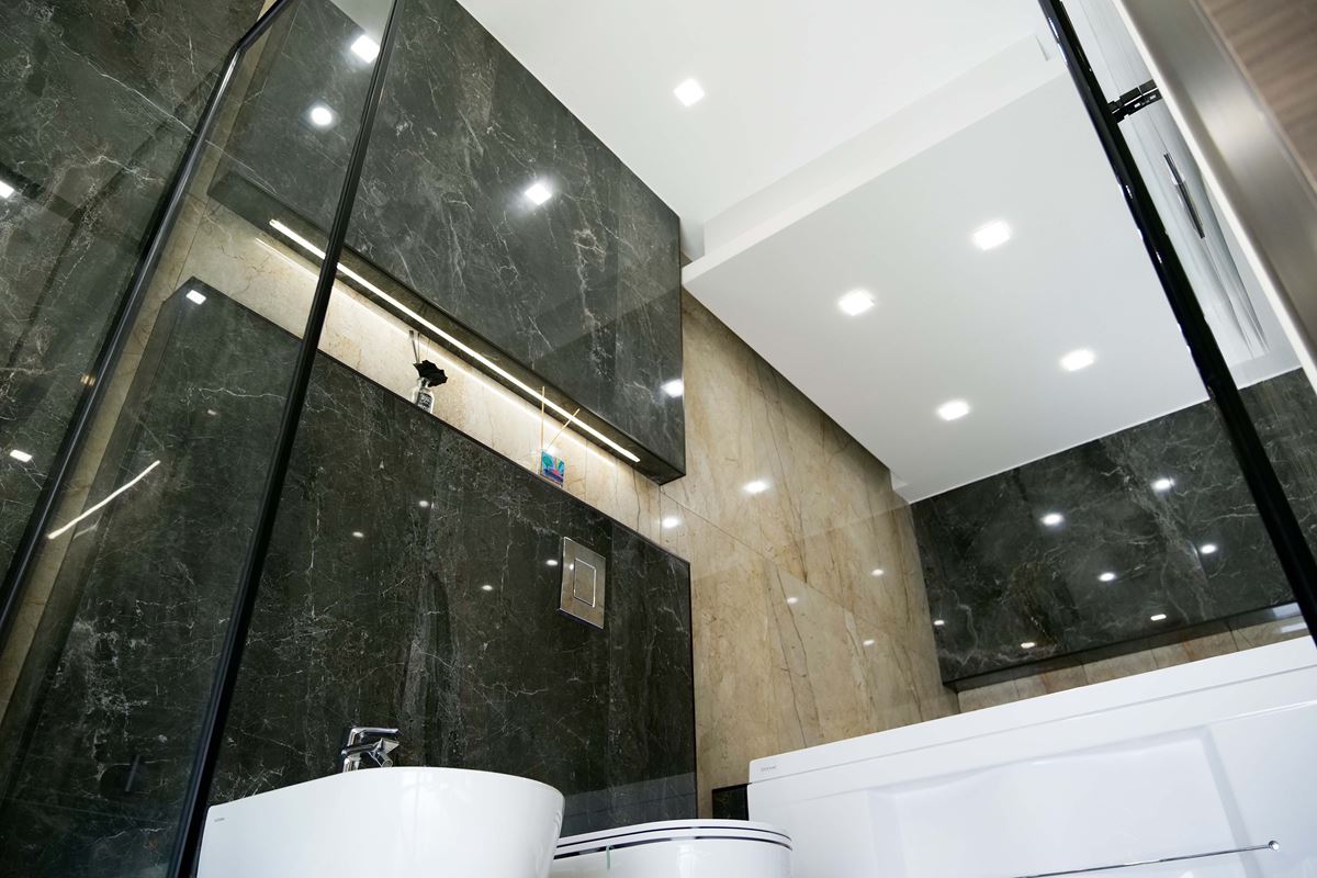 Per inserire l’illuminazione giusta abbiamo controsoffittato tutta la casa.