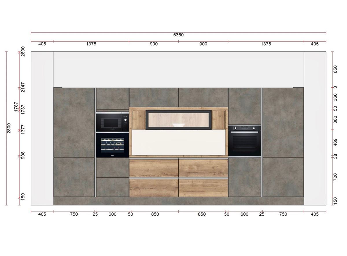 Il progetto dell’intera abitazione è partito da qui, la parete con colonne ospita tutto il necessario per considerare una cucina funzionale e bella, forno alto, microonde, cantina, frigo e dispensa da 90cm, Lavandino sotto top in hpl, prese sul piano di lavoro, led perimetrale e snack in legno.